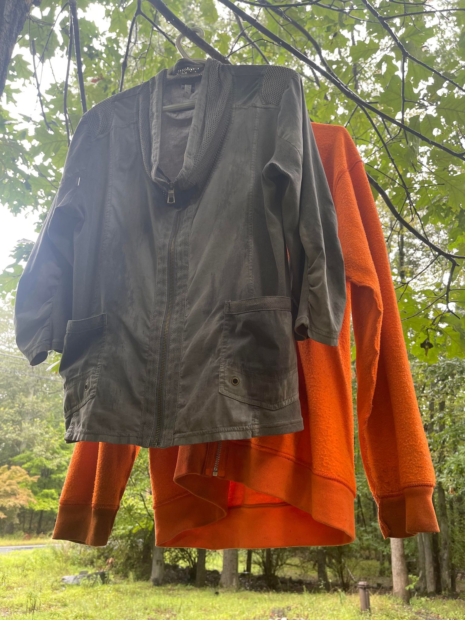 It was rainy here on Little Mountain. The air feels fresh. Things feel clean and shiny again. Thinking about a garden. My art got wet but only on the inside. The outside was completely dry.