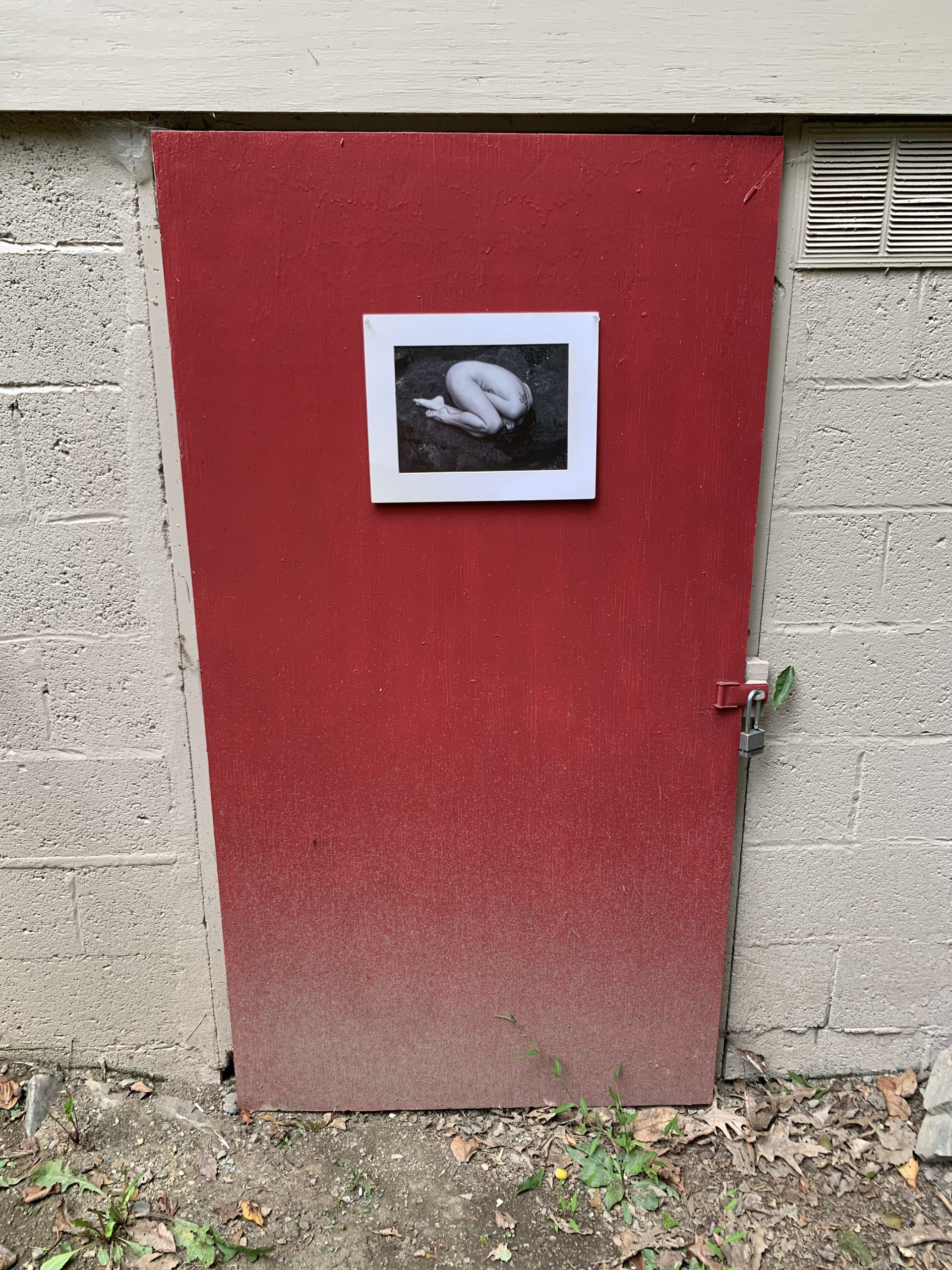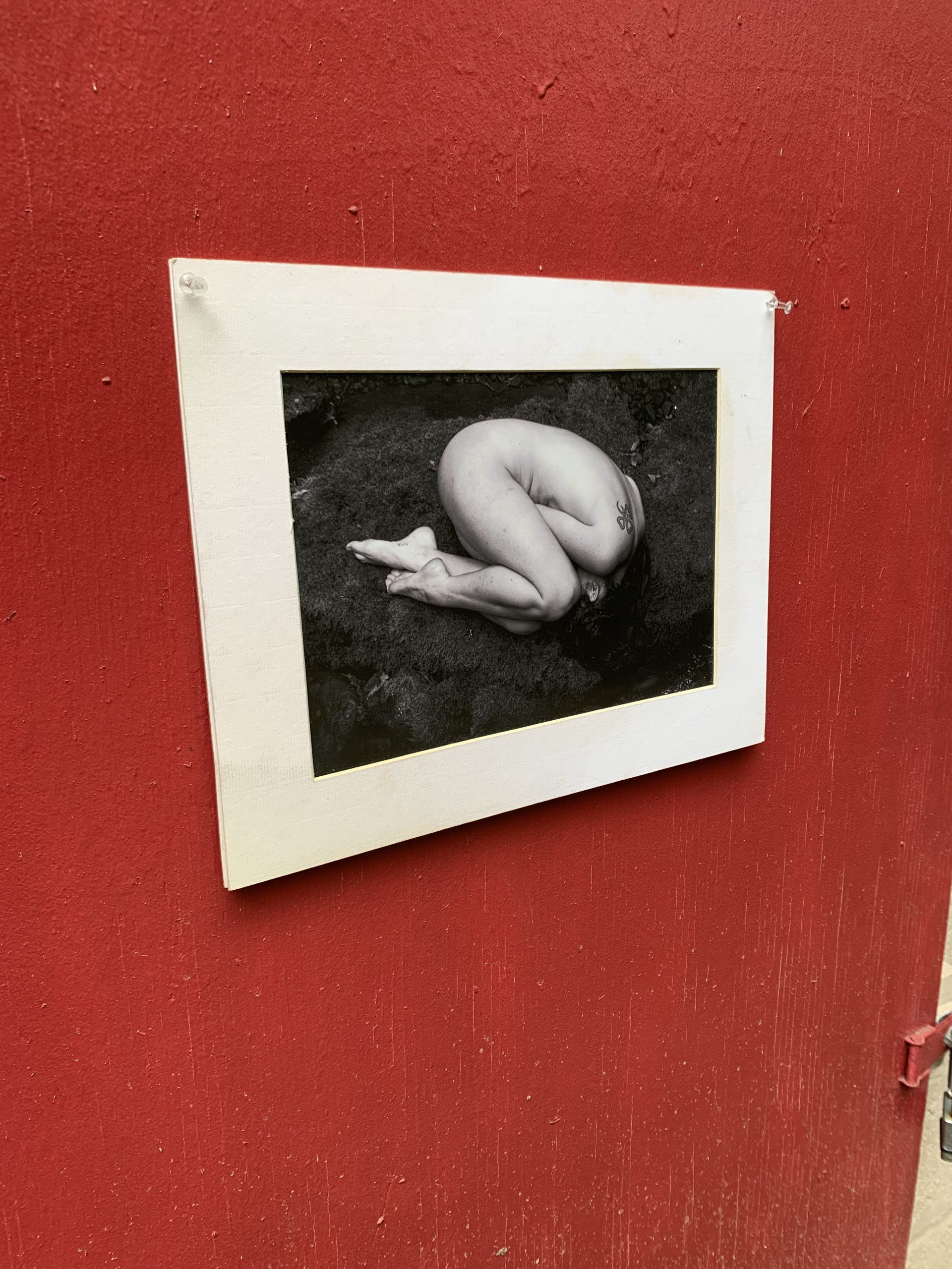 This photo I took featuring a live, nude person will stay up until it is sold or it becomes weathered. We wanted to hang up more art but our funds are low. We are looking for a donation of thumb tacks and finishing nails.